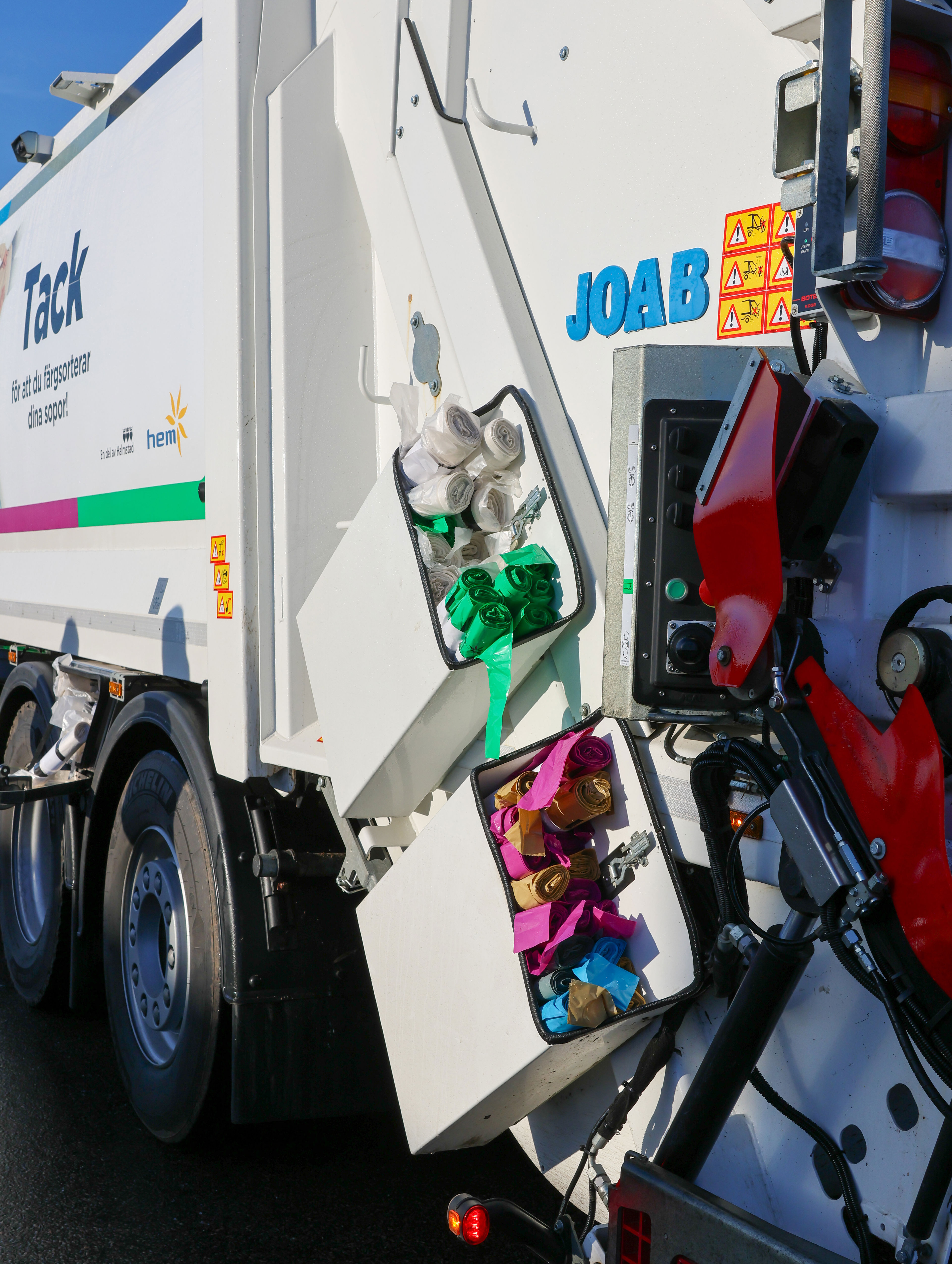 Förutom själva sophämtningen ska chaufförerna sedan HEM införde färgsortering, också lägga nya påsrullar på de soptunnor där man knutit en eller flera färgade påsar för att signalera att man behöver fler.